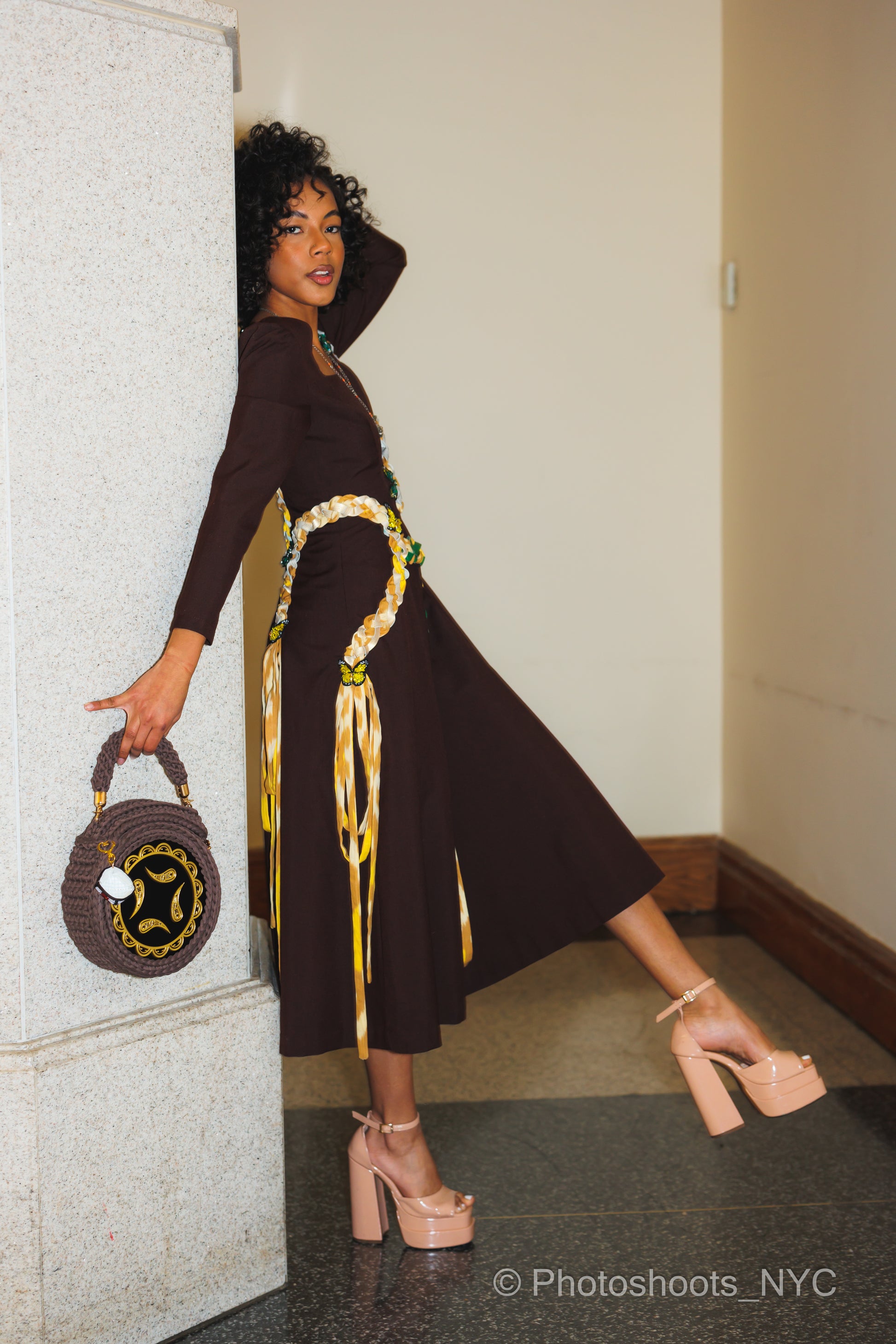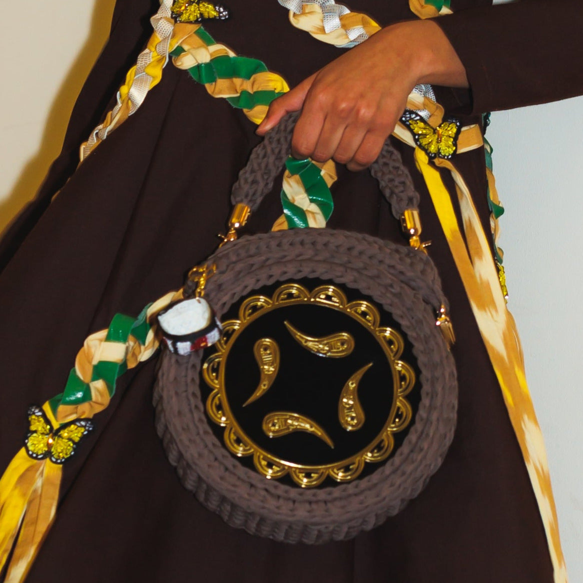 Introducing the Brown Almond Embroidered Canteen Bag – a fusion of sophistication and intricate detailing. This chic accessory showcases a classic canteen shape adorned with elegant almond-shaped embroidery in rich brown tones.