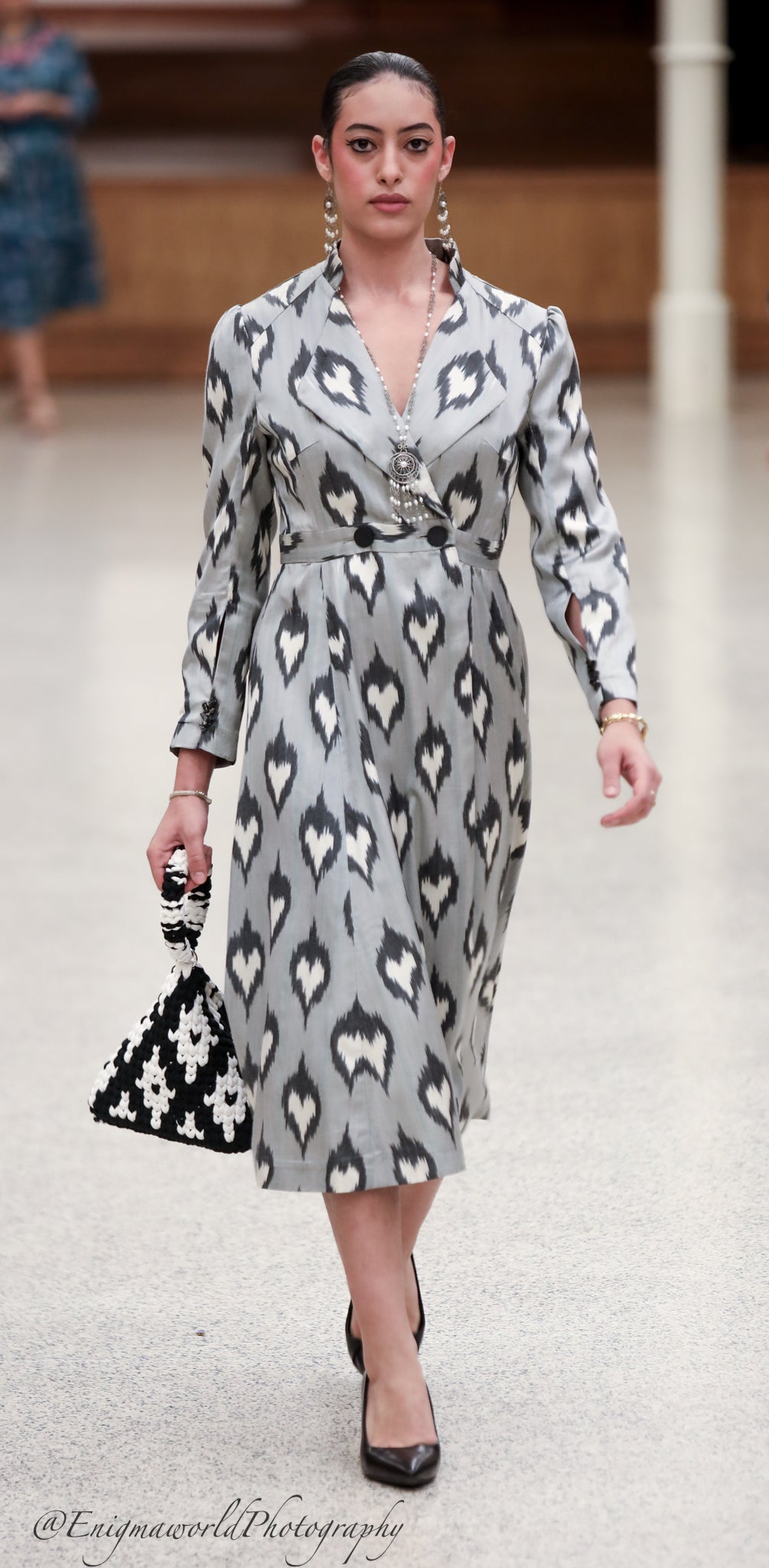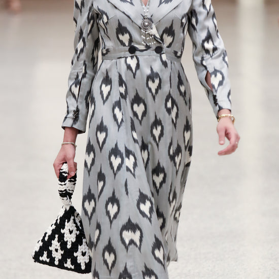 Grey Silky Dress with Uzbek Patterns